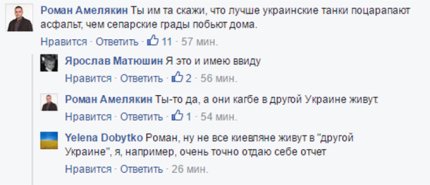 При этом блогер Ярослав Матюшин в Facebook написал такой комментарий: «Заехал проведать родителей и забрать мамины анализы. В широкинском направлении …уярит канонада - от этого быстро отвыкаешь. А так-то кияне могут завидовать жителям Мариуполя. 24го танки не поцарапают нам асфальт. Все наши танки в полях».