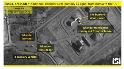 "В разведывательном отчете Imagesat International показано, что ракетные комплексы развернуты в Краснодаре, за 270 миль (434,5 километров) от границы с Украиной. На фото "Искандеры" размещены рядом с несколькими бункерами и другими складскими ангарами. Рядом с одной из пусковых установок находится машина, которая позволяет быстро перезаряжать ракеты в пусковую установку", - передает СМИ.