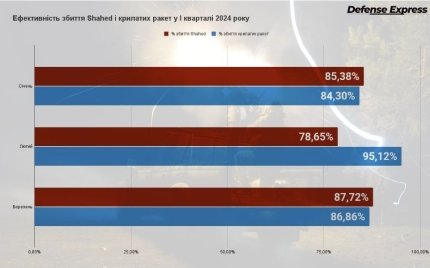 Также за первые три месяца 2024 года враг применил по Украине 65 баллистических ракет, более 100 зенитных с С-300/400 и более 40 Х-22, но украинская ПВО все равно показала сверхвысокую эффективность
