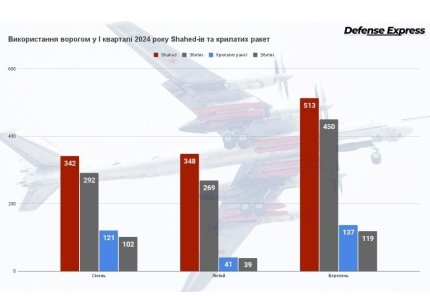 Но кроме концентрированных атак враг также каждую ночь атакует дронами-камикадзе типа Shahed-136, которых в марте было использовано 513 единиц, что также является вторым показателем за все время.