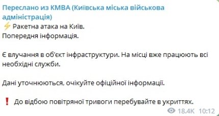 Телеграмм-каналы, отслеживающие атаки россиян, пишут, что столица может оказаться под ударами баллистических ракет.