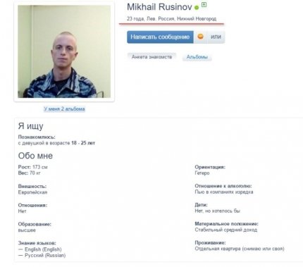В частности, один из военнослужащих российской бригады, Михаил Русинов, разместил анкету с информацией о себе на сайте знакомств, а позже прикрепил туда несколько фото.
