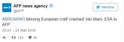 Об этом заявили в Европейском космическом агентстве, сообщает ONLINE.UA со ссылкой на Twitter AFP.