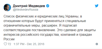 В новый антиукраиснкий список санкций России включены физические и юридические лица Украины. Медведев не уточнил, кто попал в санкционный список, подчеркнув лишь, что "это сделано для защиты интересов российского государства, компаний и граждан России".