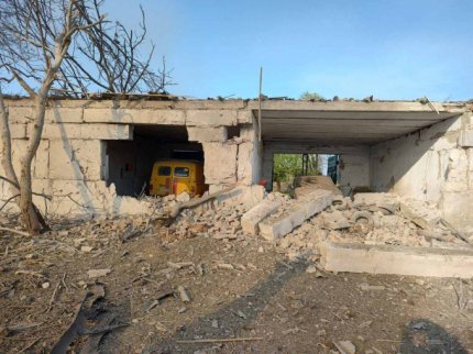 В 04:00 13 мая российская армия атаковала Берислав Херсонской области. оккупанты страны-агрессорки сбросили на город две управляемые авиабомбы.