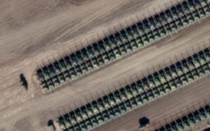 На опубликованных снимках указано, что сотни главных боевых танков РФ размещены на новой военной базе в окрестностях Каменск-Шахтинского. Туда согнали сотни танков Т-64 и Т62М, тысячи военных грузовиков, артиллерийских систем и танкеров.