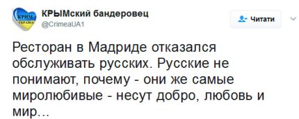В одном из ресторанов в центре испанской столицы Мадрида отказались обслуживать россиян.