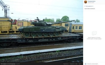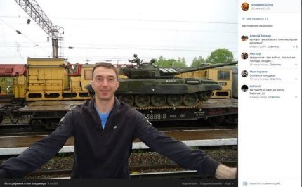 Россиянин обнародовал несколько фото российского танка, в том числе и своё селфи на фоне военной техники и подписал фото: "Мы приехали на Донбасс".