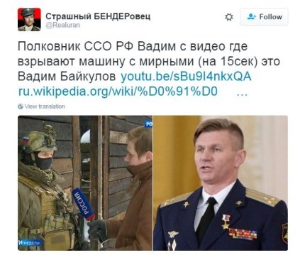 Кроме того, на видео полковник армии РФ, который не пожелал называть свое имя, рассказал "Вестям", что снайперы якобы ведут наблюдение за позициями боевиков ИГИЛ и выявляют командиров по характерным признакам. Пользователи сети пишут, что полковника, за информацию о котором боевики ИГИЛ предлагают награду, зовут Вадим Байкулов. Он был ранее награжден президентом России Владимиром Путиным за аннексию Крыма.
