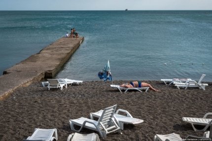 "Есть здесь неплохие пляжи с зонтиками и лежаками. Но большинство лежаков даже не расставляют. Работник одного из баров жалуется, что в этом году приехало меньше народу, чем в прошлом. Боится, что в следующем вообще пусто будет. "Люди приезжают один раз. Смотрят, что тут и больше не возвращаются, к сожалению, мы не конкурентноспособны".