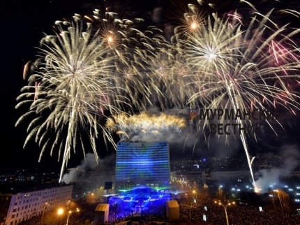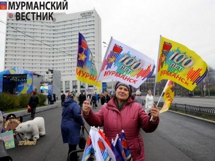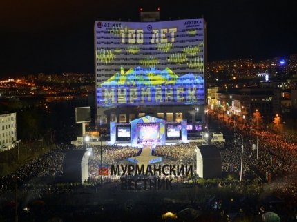В субботу, 8 октября в Мурманске отмечали столетний юбилей города. При этом, большую часть оформления мероприятия выдержали в сине-желтых цветах.