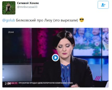 «Телеканал "Дождь" вырезал из эфира мнение Станислав Белковский про Елизавету Глинку, где он говорит, что считает Доктора Лизу пиарщиком этой войны», - написал в своем Facebook известный российский журналист Аркадий Бабченко.