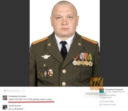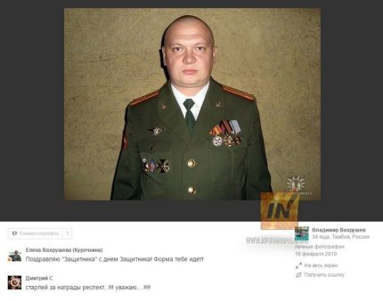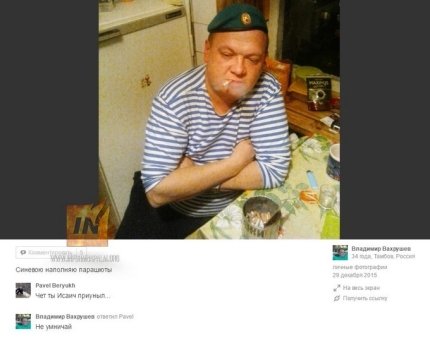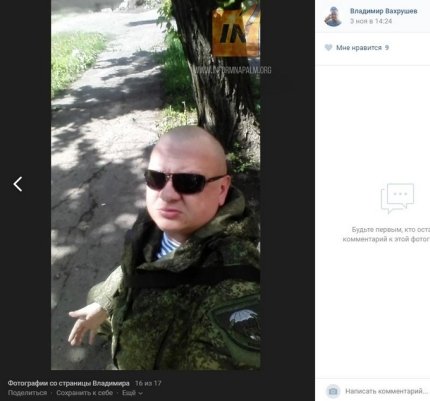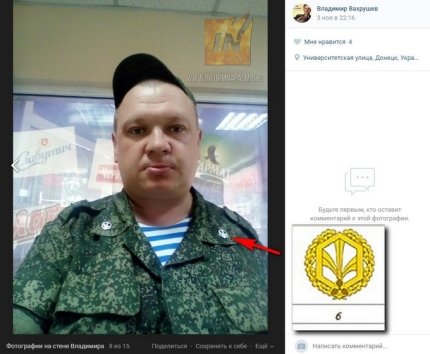 "Долгий временной разрыв между присвоениями офицерских званий скорее всего связан с периодами запоя застоя военнослужащего. О любви Вахрушева к горячительным напиткам говорят многочисленные фотографии застолий. Даже в воинской части капитан скучает на пару с Jack Daniel’s. Как бы не скрывался Вахрушев в Донецке за шевроном так называемой республиканской гвардии «ДНР», факт отправки на «исправительные работы» российского военнослужащего, утратившего моральный облик за пьянками, не оспорить", - утверждают волонтёры.