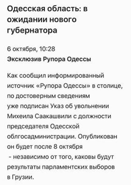 Кроме того, одесский губернатор приложил к своему сообщению новость одного из одесских ресурсов, пророчивших его увольнение.