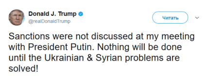 В воскресенье, Трамп опроверг тот факт, что тема о санкциях вообще поднималась