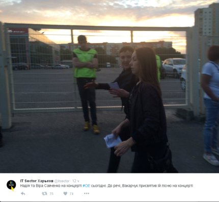«Надежда и Вера Савченко на концерте #ОЭ сегодня. Кстати, Вакарчук посвятил ей песню на концерте», - говорится в сообщении.