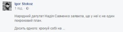 Вадим Иванов: "Савченко уверенно идет на политическое дно, а такие заявления - еще один епичний зашквар Савченко! А относительно метода Сталина, то метод Сталина привел к расстрелянному вырождению и голодомору!".
