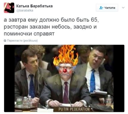 Украинский политолог Евгений Магда прокомментировал новость о смерти российского дипломата, обнародованную пресс-службой МИД РФ: "Чуркин ушел от Гааги. Извините, что без эмпатии".