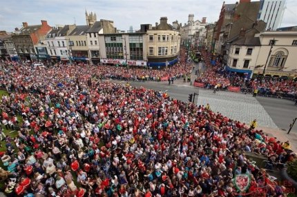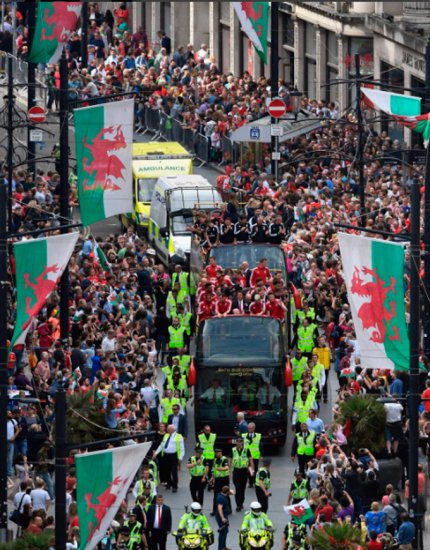 Как сообщает ONLINE.UA, национальных героев, добравшихся до полуфинала во Франции, на улицы Кардиффа вышли встречать более 200 тысяч человек.