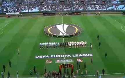 19:57. футболисты уже на поле. Слушаем гимн Лиги Европы
