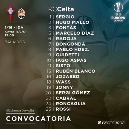 11:38. "Сельта" еще вчера обнародовала заявку на матч. У команды из Виго кадровых потерь нет. Эдуардо Бериццо сегодня рассчитывает на следующих исполнителей: