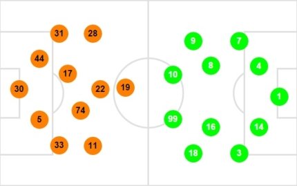 18:55. До начала встречи осталось немногим более часа. Уже известны стартовые составы. Как видим, сегодня Мистер выпустил двоих форвардов, один из которых (Эдуардо) сыграет на позиции атакующего полузащитника