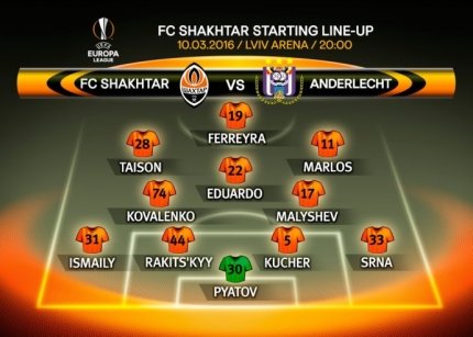 19:50. Напомним, "Шахтер" в 1/16 финала уверенно переиграл "Шальке" (0:0, 3:0), а "Андерлехт" прошел греческий "Олимпиакос" (1:0, 1:1 в дополнительное время)