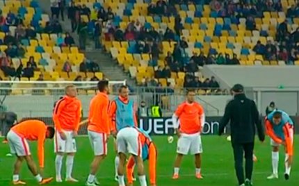 21:32. трибуны "Арена-Львов" постепенно заполняются. Футболисты делают разминку