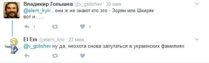 Стоит отметить, что российские СМИ своеобразно рассказали об этой новости: памятуя о ляпе в новости о Зоряне Шкиряке и хохоте, который возник в соцсетях по этому поводу, пропагандисты Кремля не стали выносить его фамилию в заголовок.
