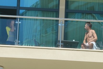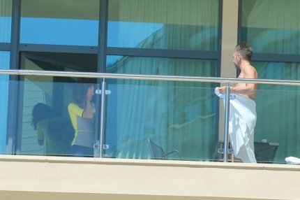 Папарацци застукали Шнура с женой Матильдой на балконе пятизвездочного отеля.