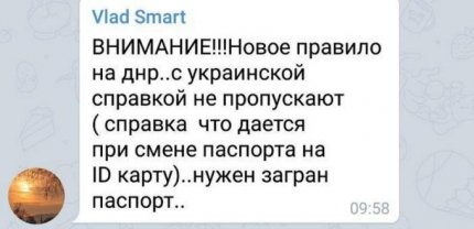 На одном из форумов жителей оккупированного Донбасса сообщается, что уже несколько недель назад боевики ввели запрет на пересечение линии разграничения по украинской справке, которая временно выдается как документ удостоверяющий личность на период обмена старого паспорта гражданина Украины на ID-карту. По словам очевидца, сложности с документом возникли у одного из проезжавших блокпост боевиков "ДНР" в Еленовке.