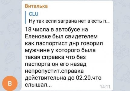 "18 декабря в автобусе на Еленовке был свидетелем, как паспортист "ДНР" говорил мужчине, у которого была такая справка, что без паспорта он его назад не пропустит. При чем справка действительна до 02.20", - подтверждают информацию другие участники форума.