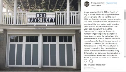 Создатели часов даже создали для них аккаунт в Инстаграм, где можно в любой момент посмотреть, сколько дней осталось до окончания первого президентского срока Трампа. Отмечается, что необычные часы достались новым владельцам дома в "наследство" от предыдущих хозяев, которые в договоре купли-продажи поставили условие на сохранение часов с обратным временем на стене здания.