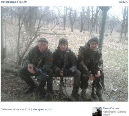 Предположительно, Михаила Соколова прикомандировали в батальоне боевиков "Леший". Первые фотографии с Донбасса датируются январем 2016 года. В том числе фото на фоне памятника с САУ "СУ-100" в Алчевске и фотографии с передовых позиций.