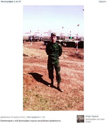 Еще одним военнослужащим РФ на оккупированном Донбассе является Игорь Тарасов, который родился 8.12.1992 года в Астрахани.