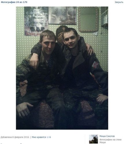 Таким образом, на Донбассе воюет Соколов Михаил Михайлович, который родился 29.11.1988 в Новокузнецке, Кемеровской области России. Срочную военную службу проходил в 2007–2008 годы в Читинской область, пос. Бада ВВС и ПВО. С 2012 года служил на контрактной основе в 6778 (386-й батальон 46-й отдельной бригады оперативного назначения, Чечня) ВВ МВД РФ. Имеет статус "участник боевых действий".