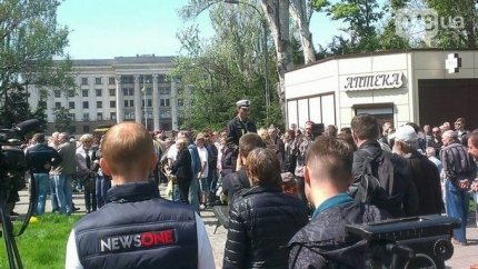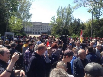 "Собралось около сотни человек, которые требуют у полиции пустить их к Дому профсоюзов. Полиция следит за порядком, отводя одесситов, которые вступают в словесные перепалки с сепаратистами", - говорится в сообщении.
