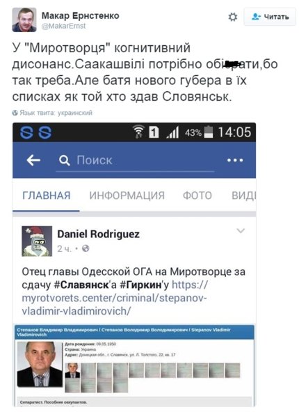 При этом в сети некоторые пользователи усомнились в том, что Владимир Степанов с «Миротворца» - отец одесского губернатора Максима Степанова, а не просто однофамилец.