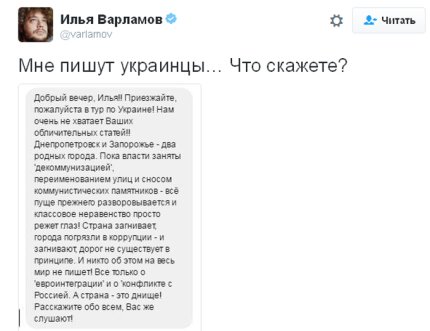 В ответ Варламов получил довольно много комментариев, большинство из которых сводилось к тому, чтобы отговорить блогера от приезда в Украину.