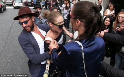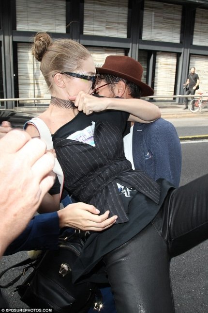Когда Джиджи во время выхода из модного показа Max Mara в рамках Недели моды в Милане вместе с сестрой Беллой, фотографировалась с поклонниками, ее из-за спины схватил Седюк и поднял в воздух.