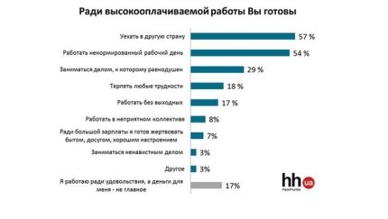 Также участники опроса ответили на вопрос о том, что они готовы были бы сделать ради высокооплачиваемой работы: