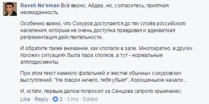 Крымскотатарский журналист Айдер Муждабаев резко прокомментировал обращение российского режиссера Александра Сокурова на кинопремии "Ника", который выступил в поддержку задержанных в Москве участников антикоррупционных митингов.