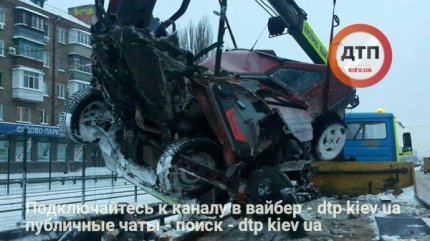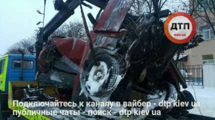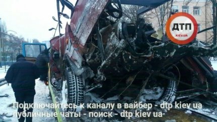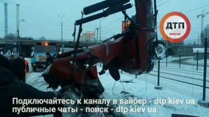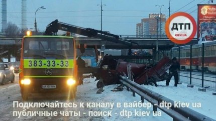 В Киеве утром 9 января водитель автомобиля ВАЗ не справился с управлением, налетел на отбойник и погиб, машину от удара разорвало надвое.