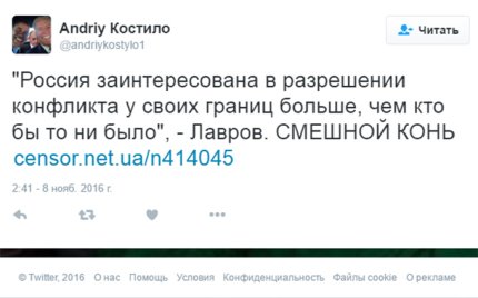 «Лавров уверен, что дипломатия - это говорить одно, а делать другое», - пишет в своем Twitter пользователь Юрий Агапов.
