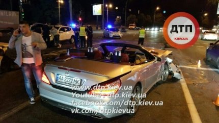 Вечером 20 августа на бульваре Дружбы народов в Киеве произошло ДТП с участием люксового кабриолета Mercedes и автомобиля Toyota.