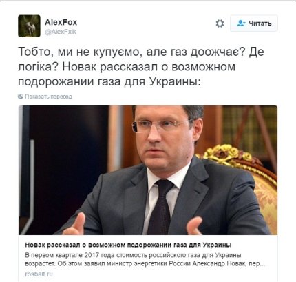 Министр энергетики РФ Александр Новак заявил, что цена российского газа для Украины в первом квартале возрастет, однако не уточнил, на сколько, отметив лишь, что это станет понятно в конце декабря.