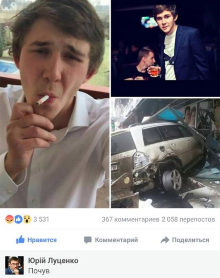 «Это Стас. Знакомьтесь. Вы о нем слышали. В январе этого года он мерседесом на большой скорости впечатал бабушку в киоск на Левобережке. Говорят, был пьяный или вмазанный. Бабушка умерла. Еще пару людей получили травмы», - написал в Facebook известный украинский блогер Роман Синицын и опубликовал фотографии.
