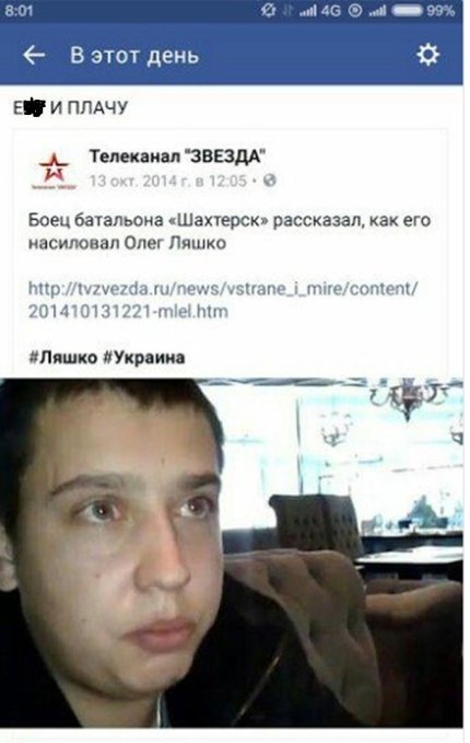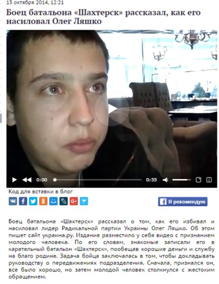 Телеканал «Звезда» якобы цитирует некоего «бойца батальона «Шахтерск», который на видео рассказывает, будто его избивал и насиловал Олег Ляшко.