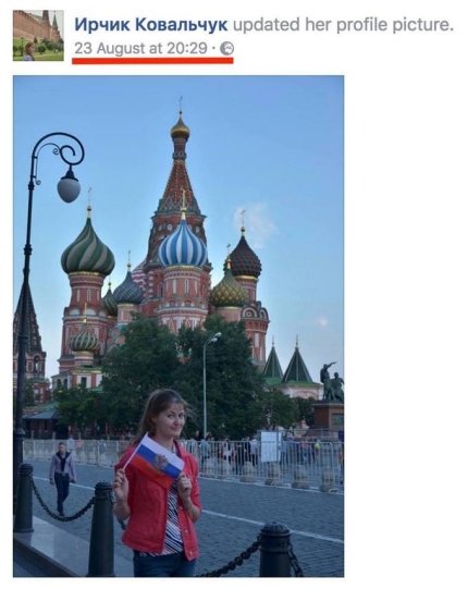 Он также отметил, что на День Государственного Флага Украины Ирина Ковальчук позировала с флагом России на фоне собора Василия Блаженного, а на День Независимости Украины Инна Ковальчук встретила у Кремля.