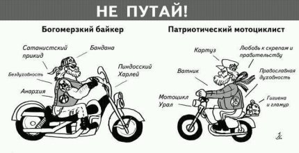 Вика Барас недоумевает: "Че он в седло одет?", Михаил Шилин считает, что жилетку байкер "одолжил у Херурга" (лидера "Ночных волков" Александра Залдостанова по кличке "Хирург").
